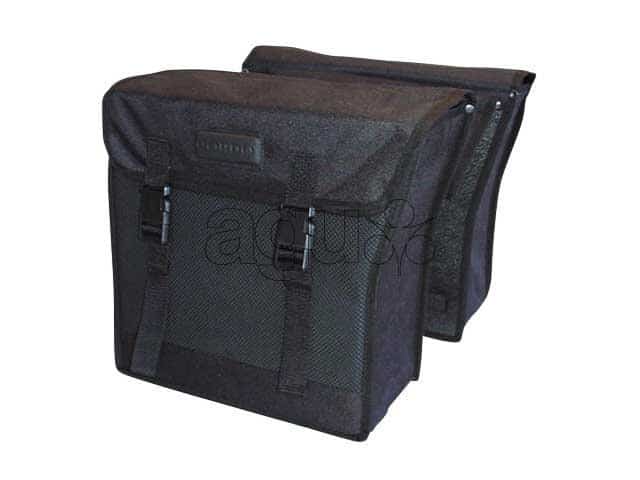 Robuuste dubbele tas van 100% canvas met uniek bevestigingssysteem. Deze tas is afneembaar, beveiligd tegen diefstal, uitsparing voor snelbinders/ledverlichting, regenoren en reflectie. Inhoud: 47,5 ltr. Afmetingen: 33x39x18,5cm. Middenpaneel: 18cm.