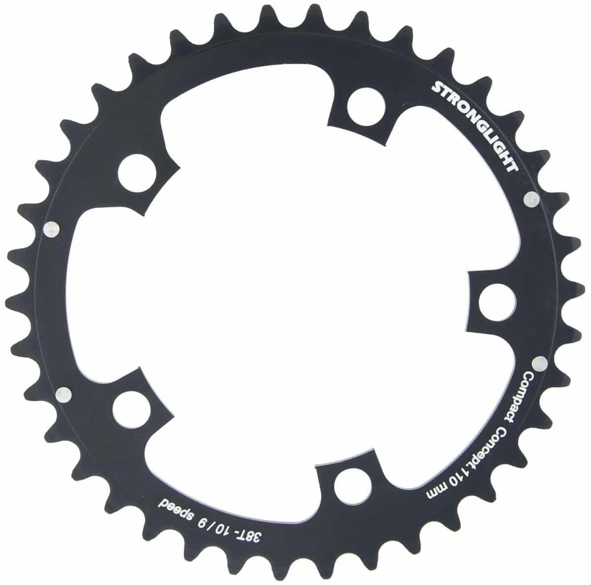 Stronglight Kettingblad 38T/110 5-arm Strongl/Shim 9/10V race Dural alu 5083 Zwart